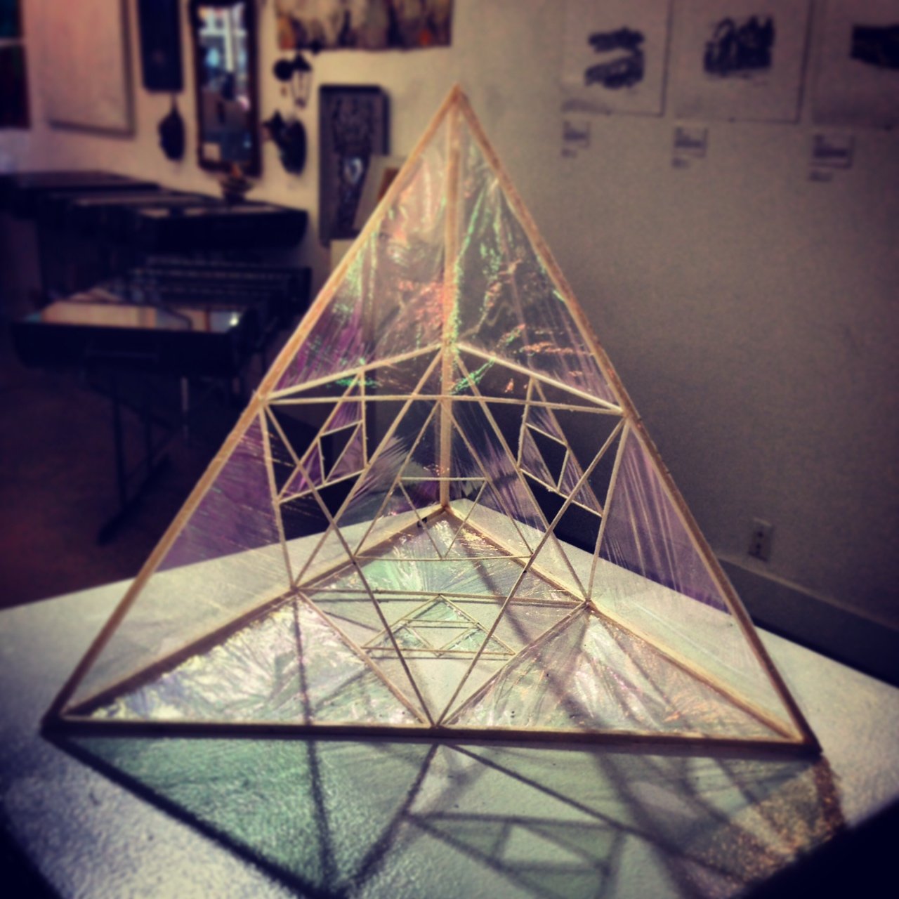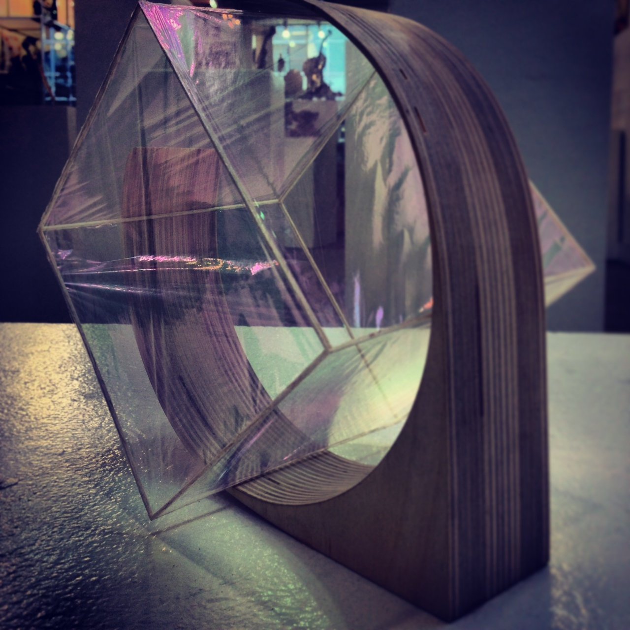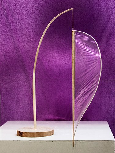 Balsa wood, polyester Film 0.5 micron thickness (Y2K2 film), cellulose glue, cherry wood